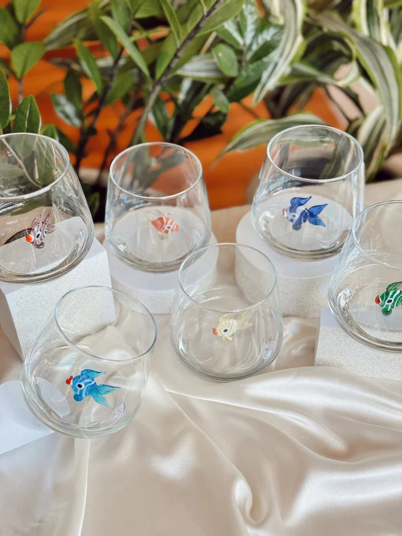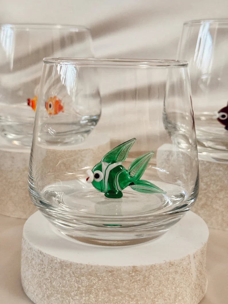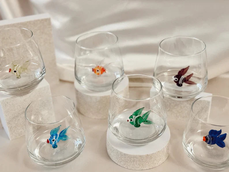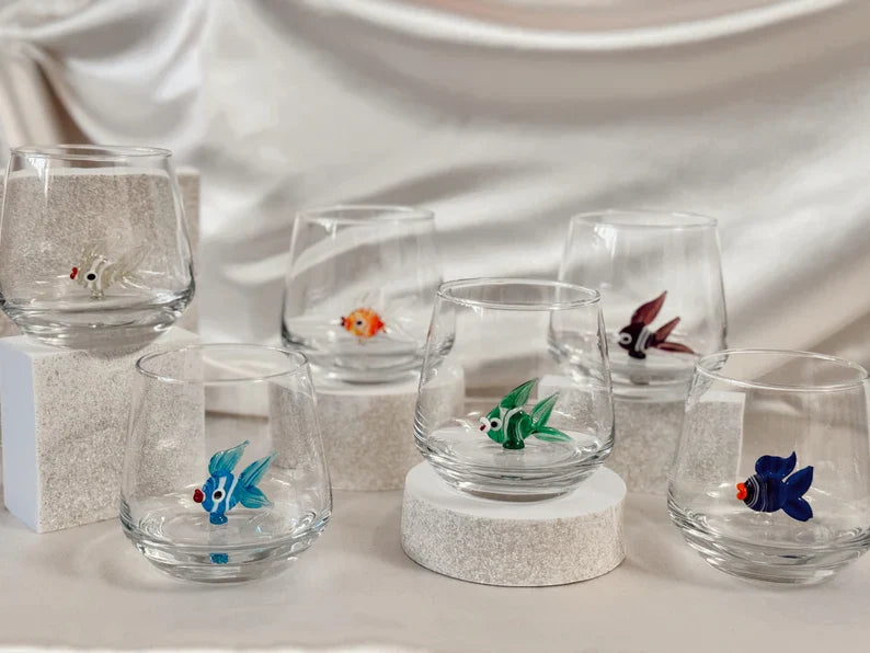 ✨ Celebrate the serene beauty of aquatic life with our Tiny Fish Murano Glass Cups – where artisan craftsmanship meets elegant underwater-inspired design.