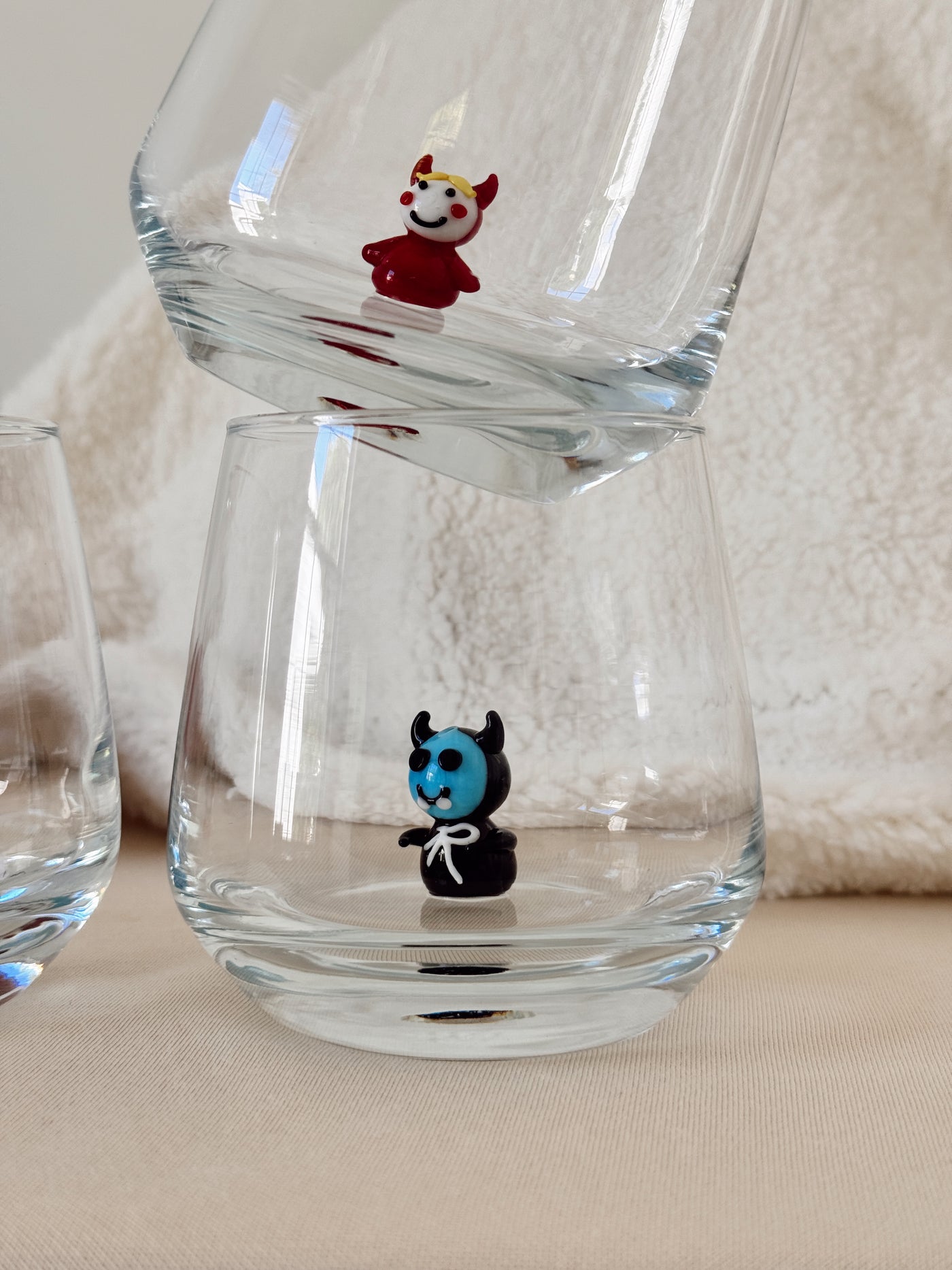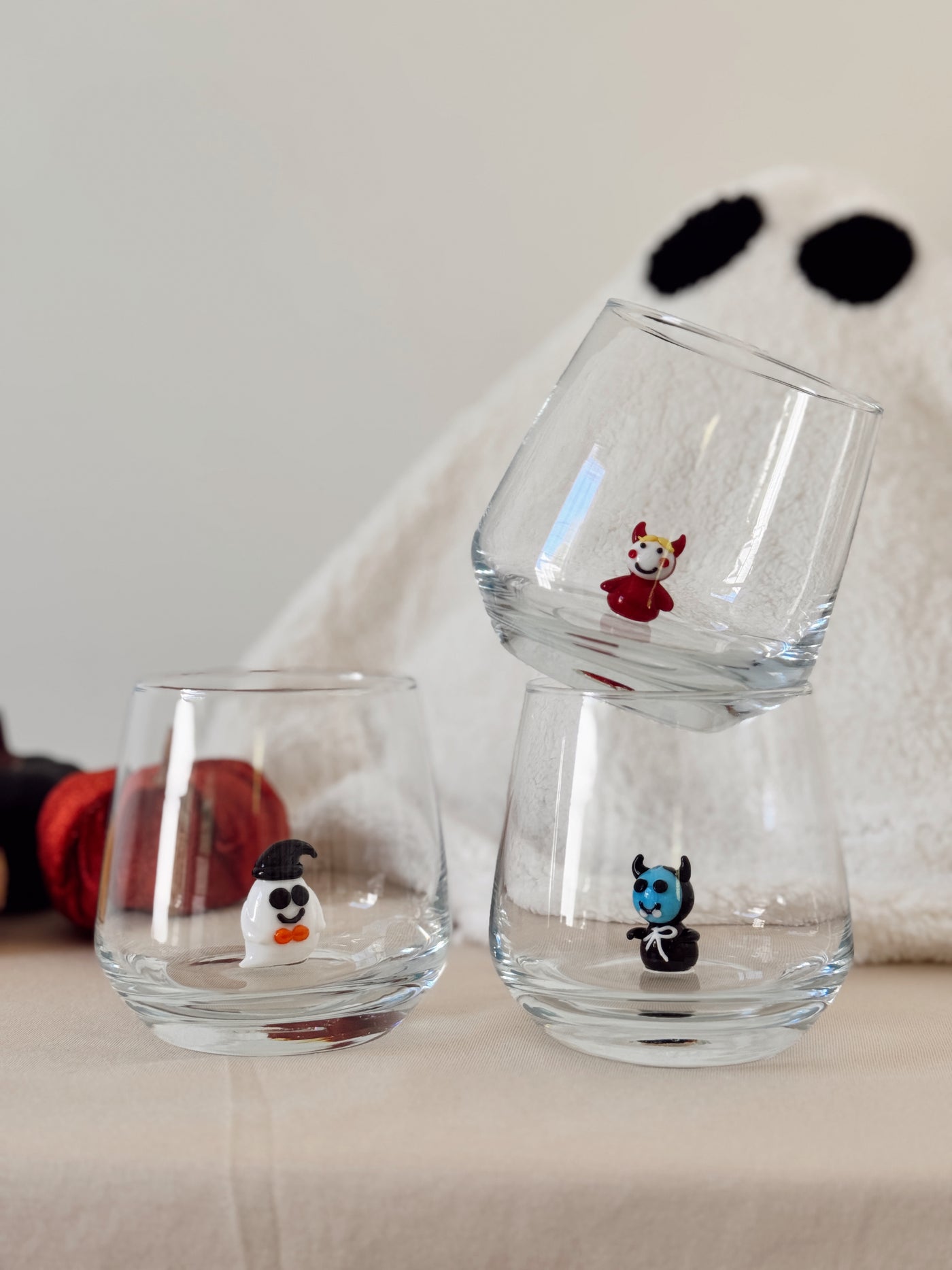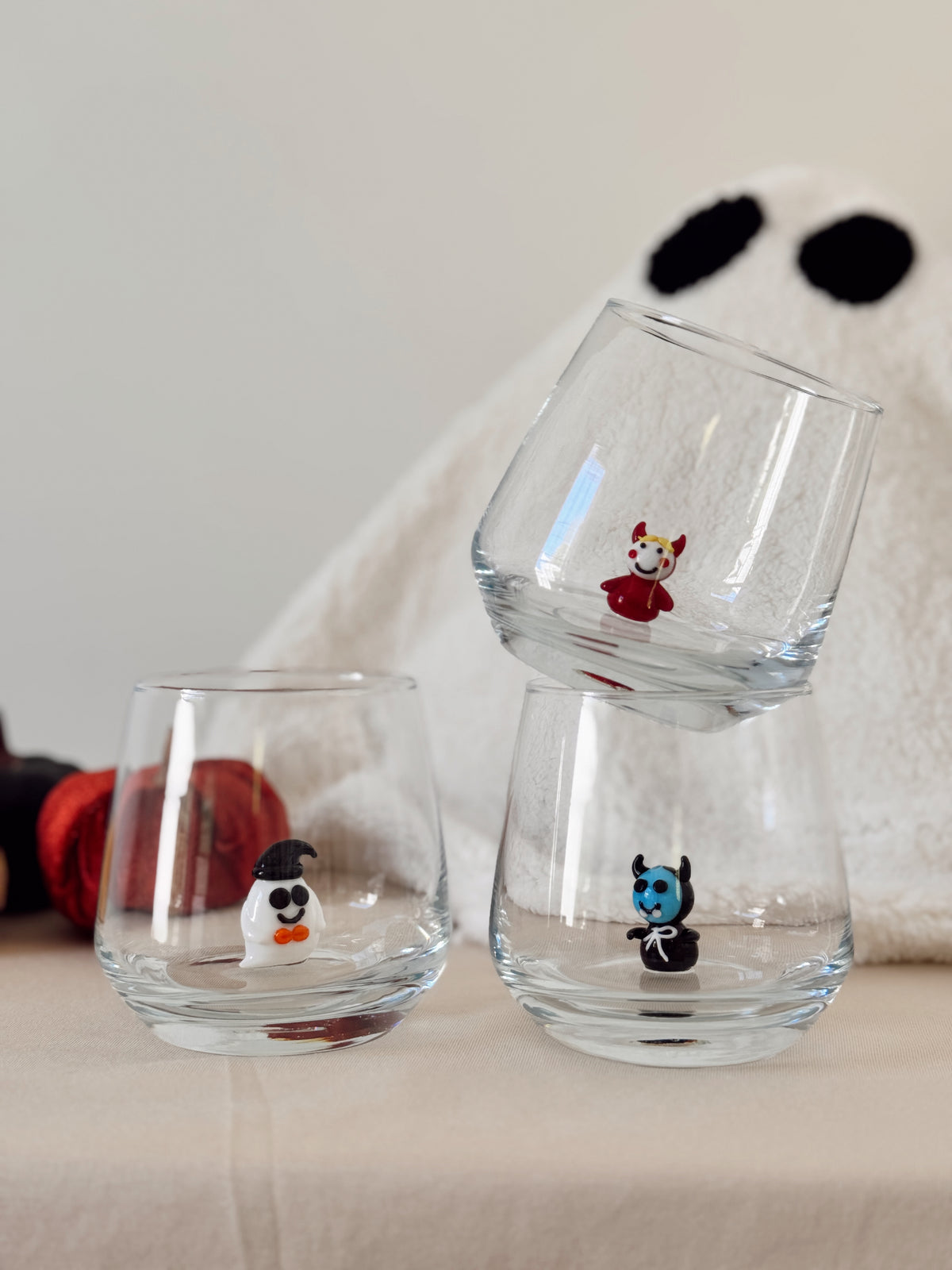 Limited Edition Halloween Wine Glasses β Ghost, Dracula & Evil Murano Figurines β Spooky Stemless Glass Set β Unique Holiday Gift