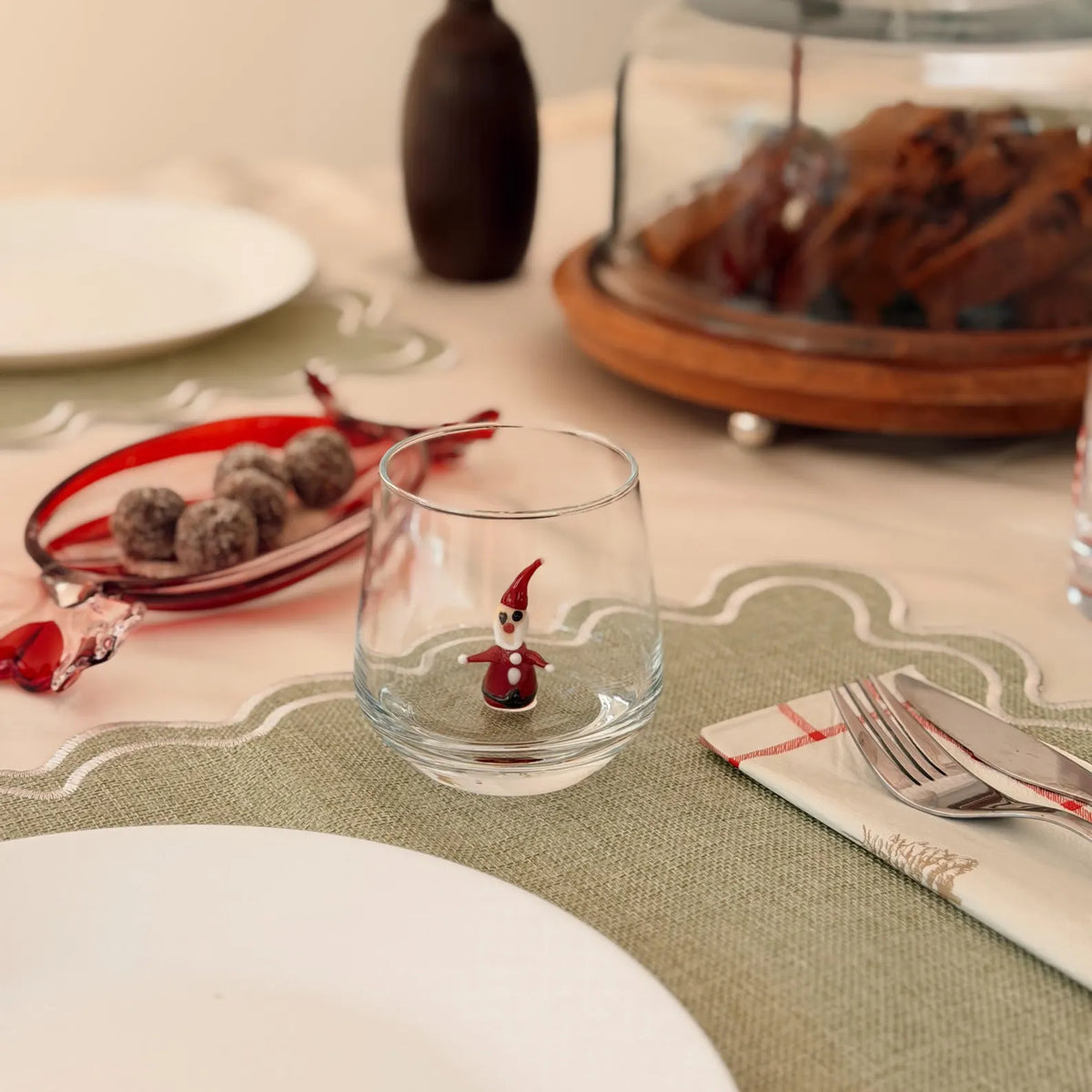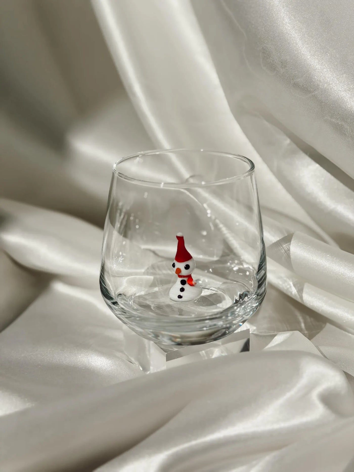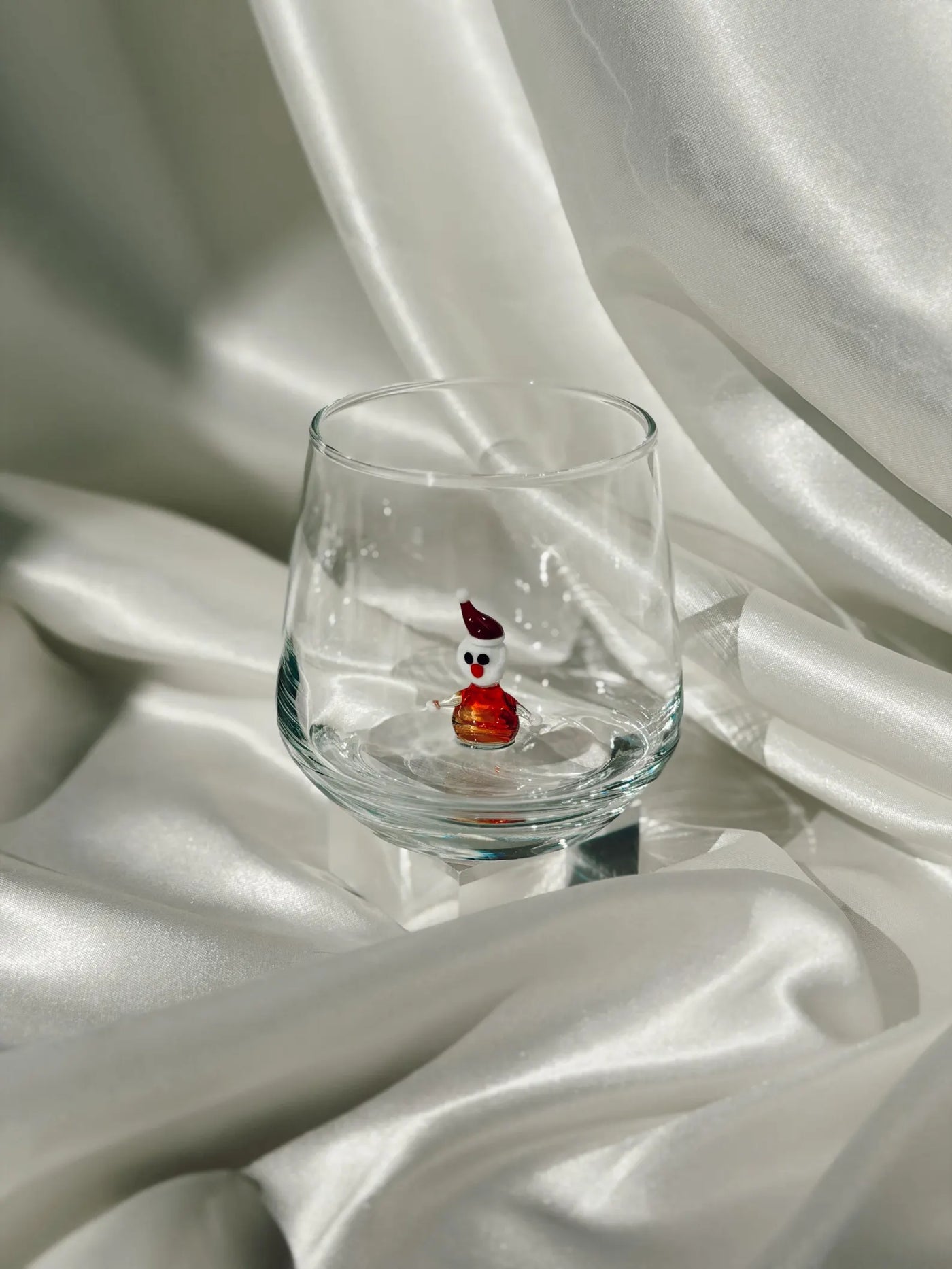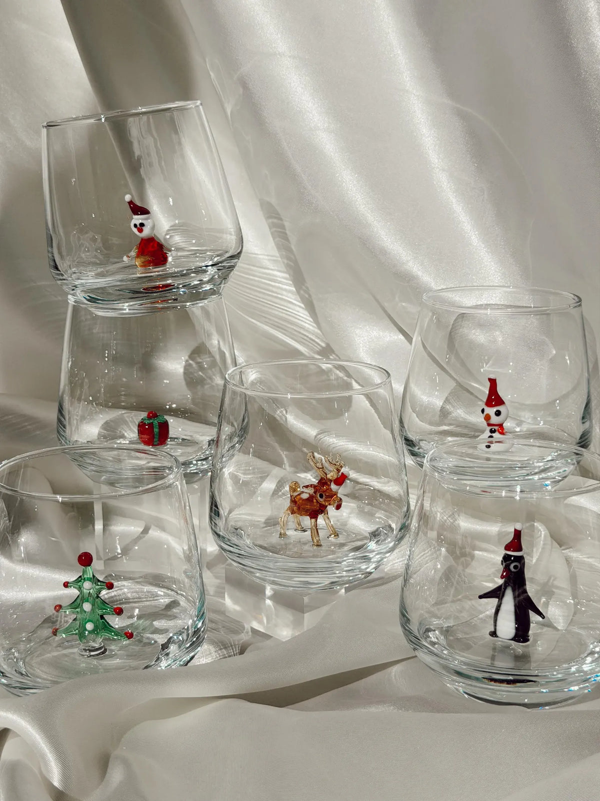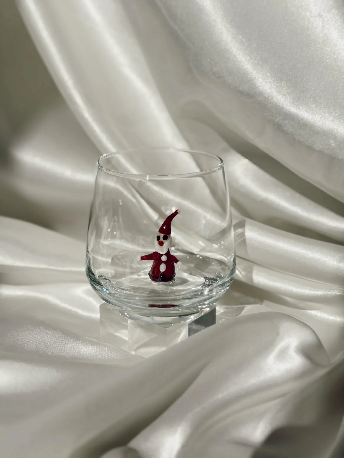 Murano Glass Christmas Cups | Stemless Wine Glass | Santa Figurine Cup | Cocktail Glasses | Holiday Party Decor | Set of 6 Cups