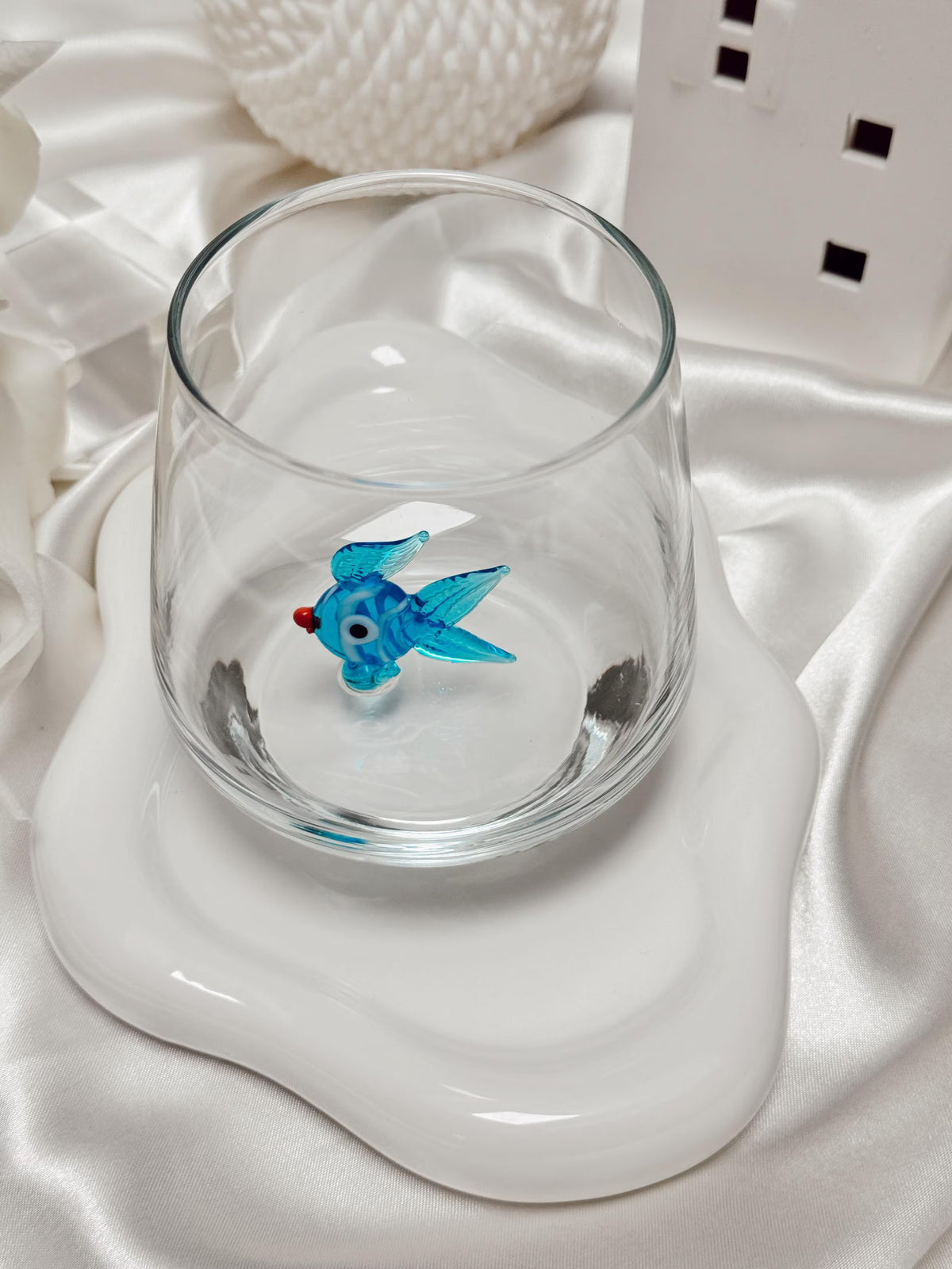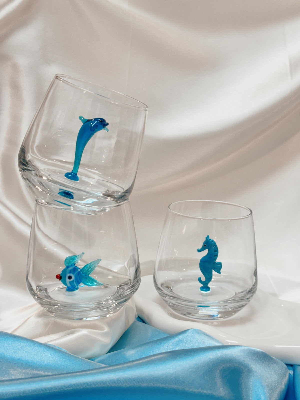 Ocean Figurine Glass Set of 3 Handmade Murano Glass Cups Dolphin, Seahorse Fish Glasses Unique Ocean Lover Gift Coastal Drinkware Set of 3