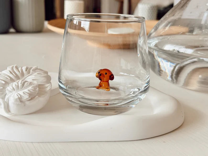 🐕🦺 Tiny Teddy Sitting Dog Murano Glass Cups – Handcrafted Dog-Inspired Drinkware